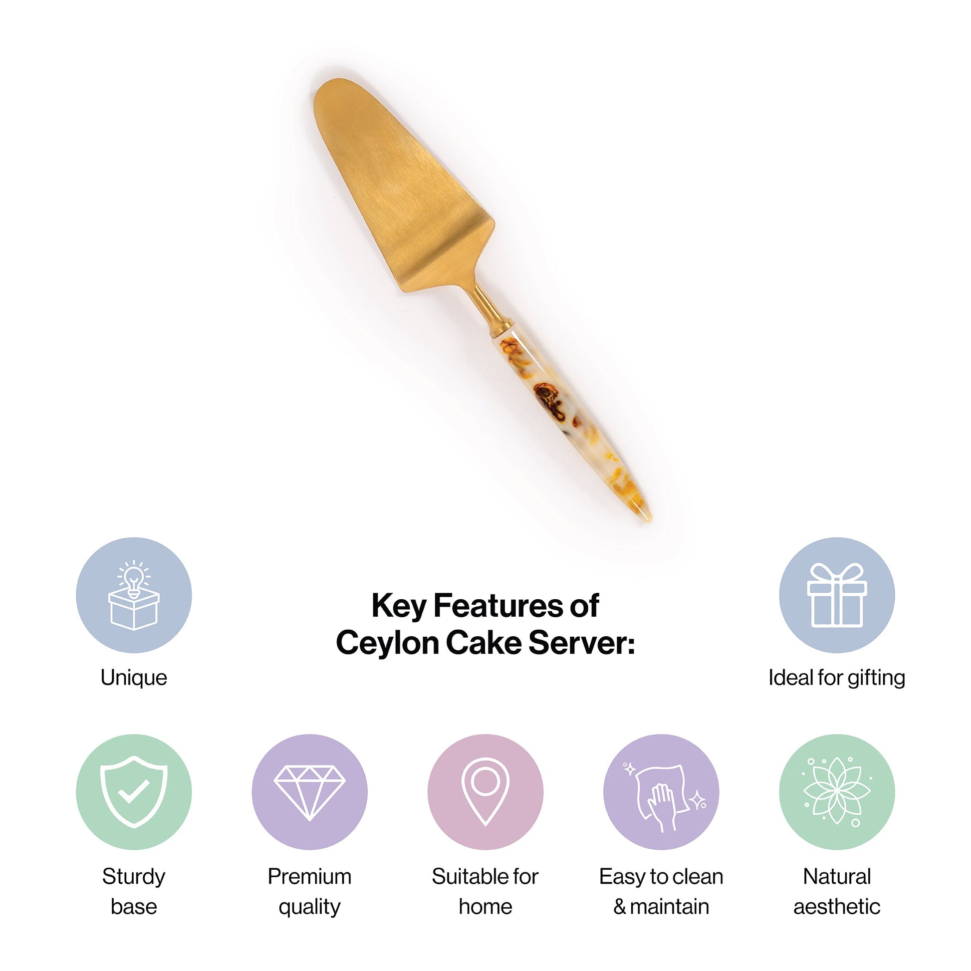Cake Serving Charm: Our stunning Ceylon cake server spoon has been designed to provide you with ease of use. This cake server comes with sharp edges that can easily glide through seam;essly in all kinds of cakes. They are perfect to use and also provide you with a strong grip.