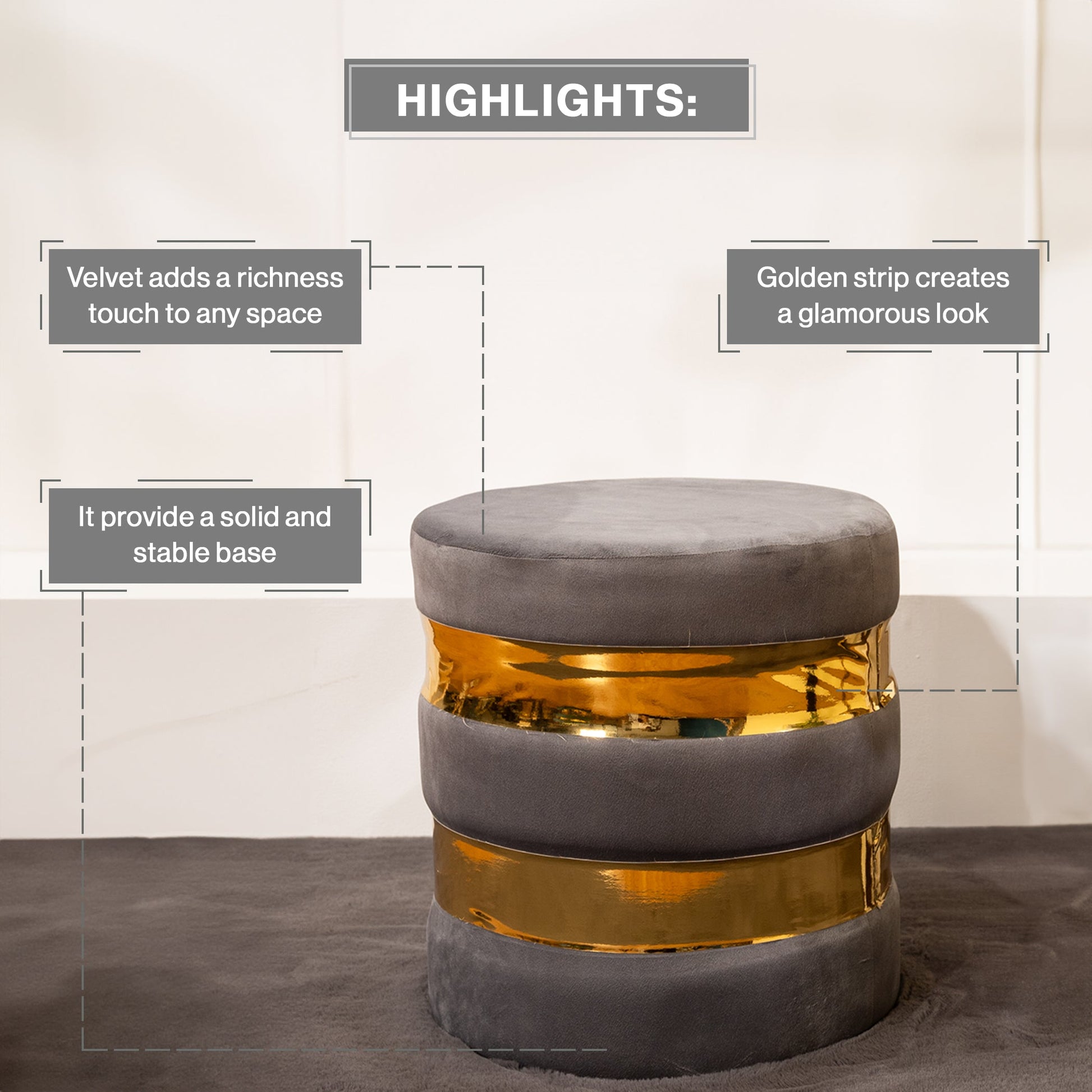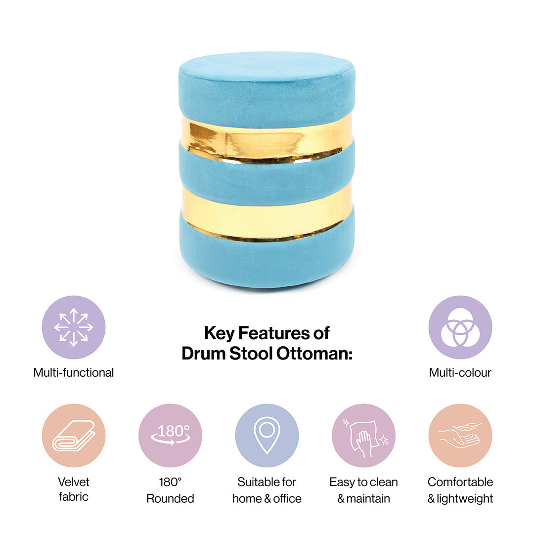 Padding: Our round drum ottoman-combo of 2 is also accompanied by a very comfortable padding that is provided by high density foam. The surface is covered with a plush velvet fabric that provides a supportive surface and also makes it easier and softer on the skin.