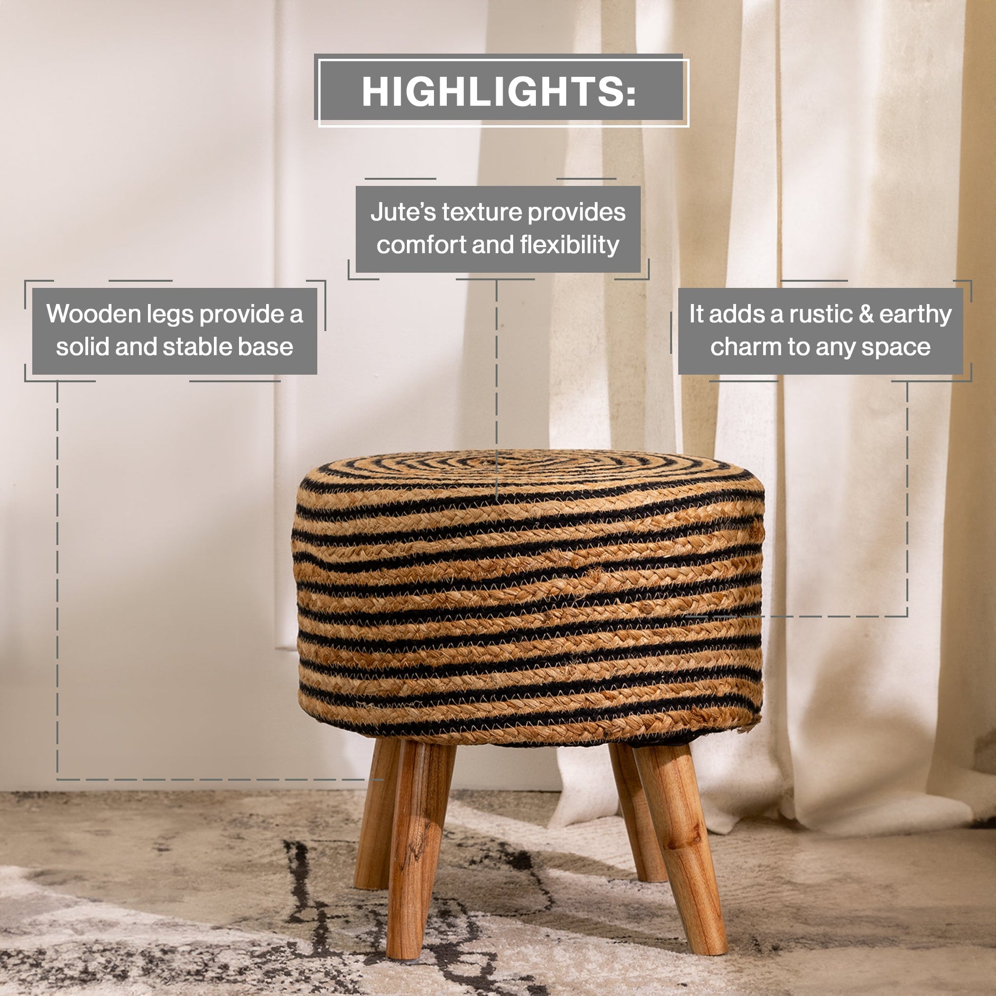 4. Material: Our handwoven jute stool - combo of 2 has been developed using completely sustainable materials such as 100% natural jute fibres. This has added to the overall strength of the schools and also maintains the sustainability aspect. The natural texture of the jute fabric has provided a beautiful earthy, warm and rustic look that can compliment any home interior.