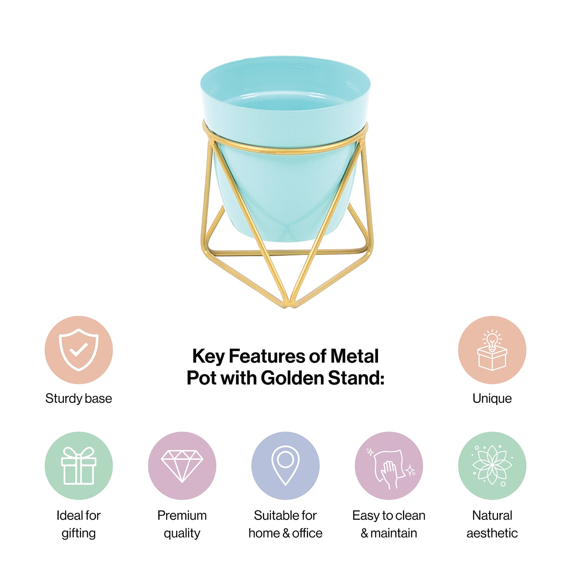 Durable Foundation: Our single golden metal pot plant stand in horizon blue, comes in a very strong and durable foundation. This gold metal pot stand has been made from sturdy and strong quality metal that is built to last. This Golden metal pot outdoor has also been painted with anti-corrosive and anti-rust paints to further maintain its value.