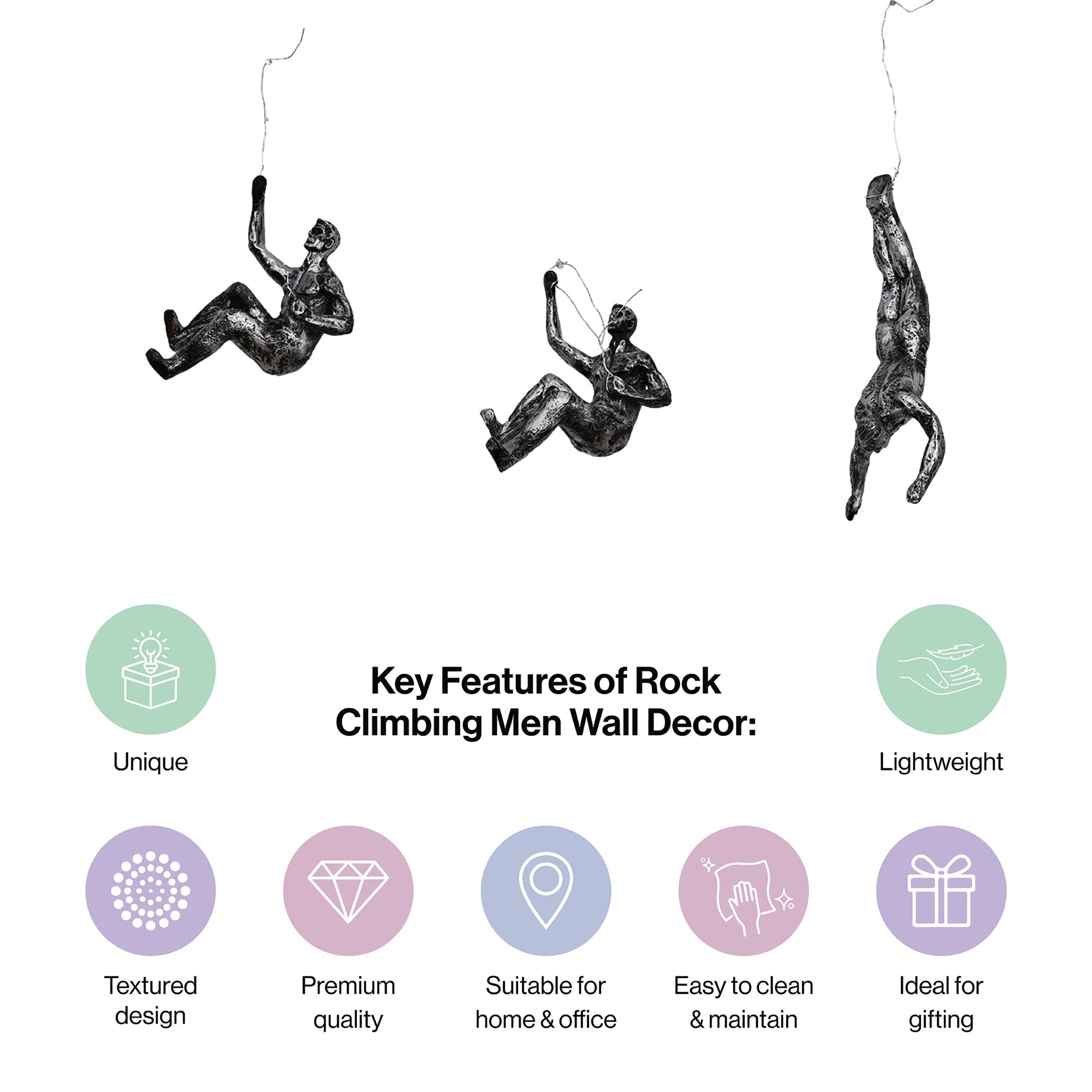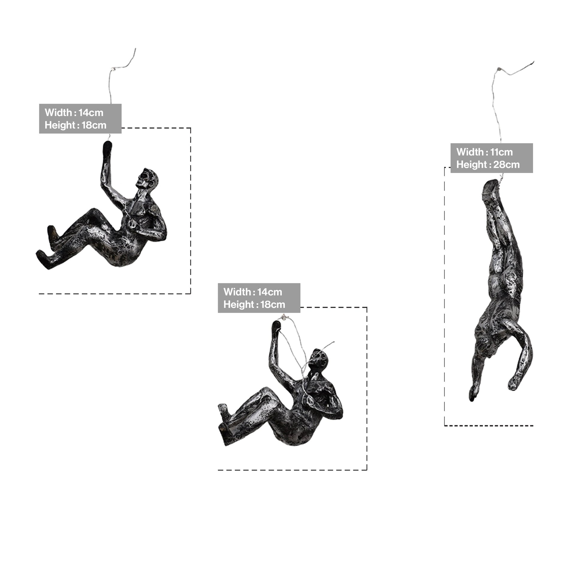 1. Resin Care: As the silver black rock climbing men wall hanging climbers are made from authentic and premium quality of resin material it is important to occasionally dust its surface or polish the surface of the climbers to maintain its beautiful texture and shine.