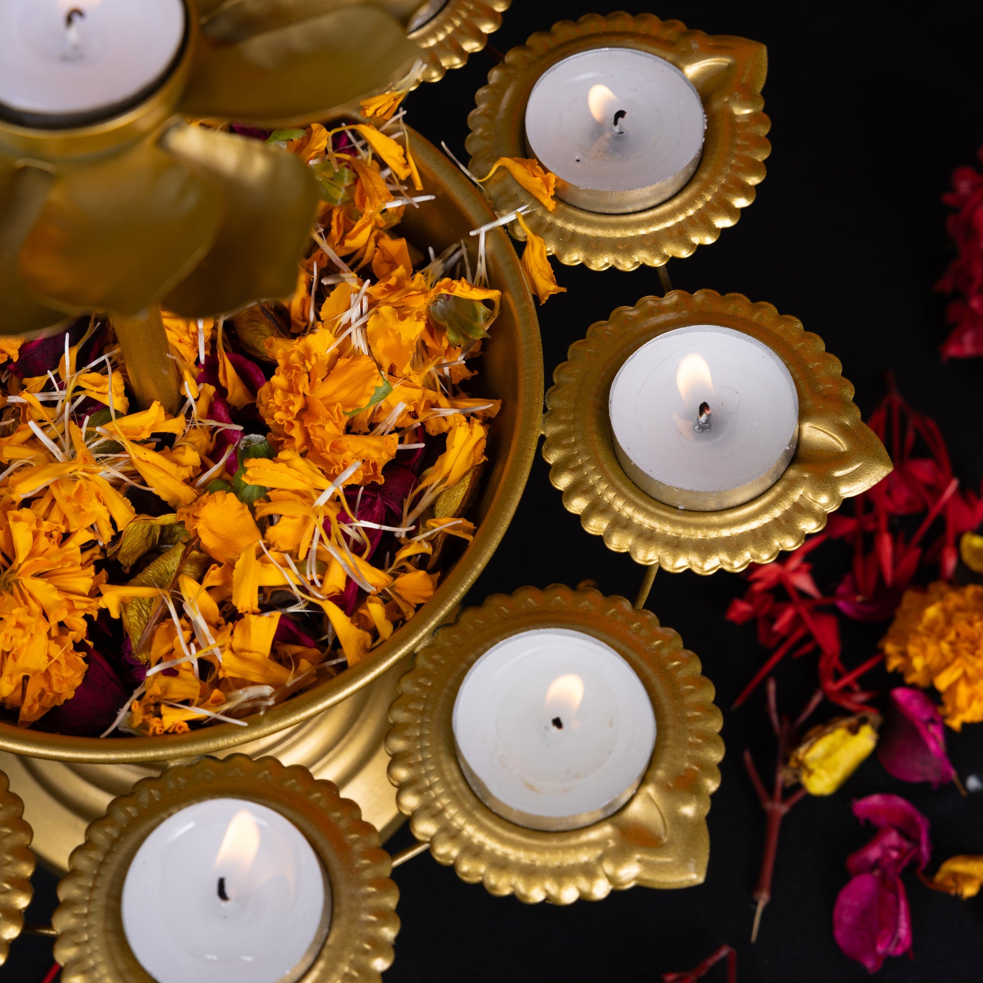 Versatility: One of the best features of this urli diya stand is that it is a versatile piece of furnishing. This urli diya stand is perfect for being used as a festive decor, altar setup and also for styling your home.