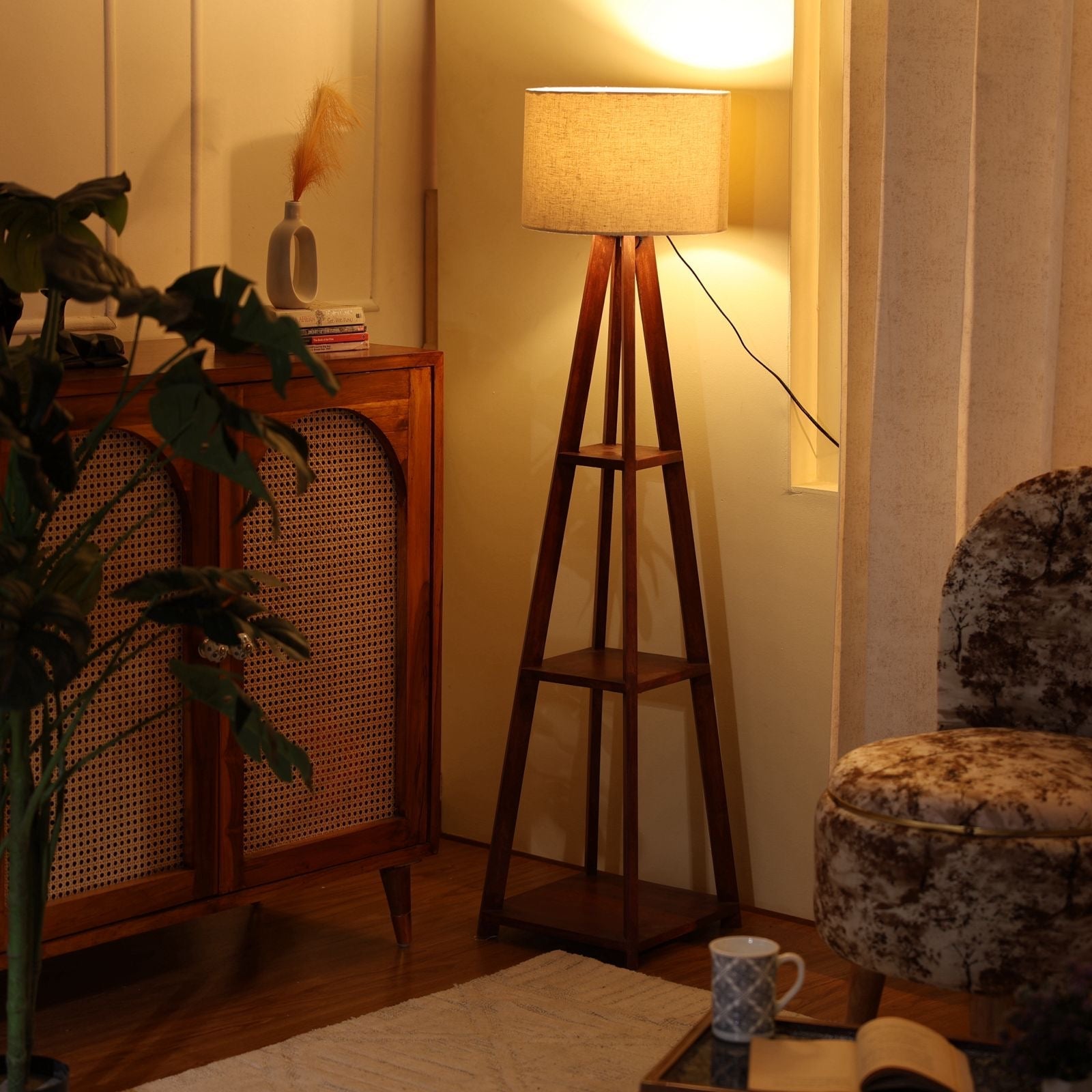 Soft-Light: The most beautiful part of the wooden floor lamp with shelves is that it makes use of a fabric lampshade that allows for the light to be evenly spread. This also provides a very warm and diffused glow leading to the creation of a very inviting and relaxing atmosphere. This will not only accentuate your existing decor but also provide ambient lighting.